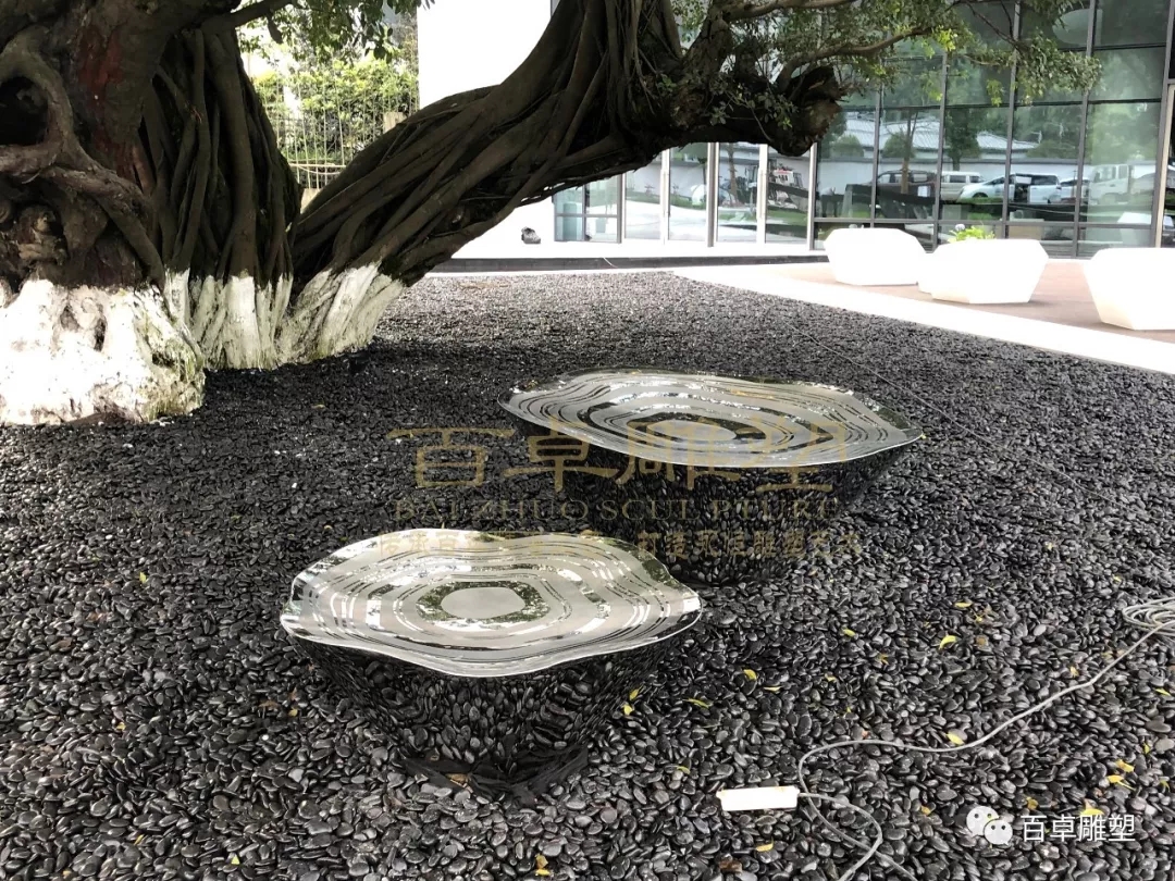不銹鋼雕塑本身的顏色銀白色,具有光澤,表面效果可鏡面也可啞光。也可根據(jù)需求為雕塑上不同的顏色。